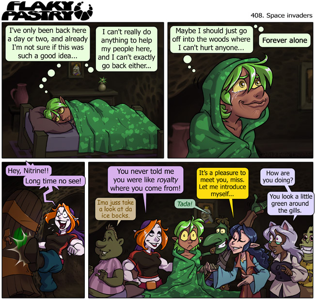 This week, on Flaky Pastry, the Year Without Nitrine comes to an end! Well, it wasn't exactly a year, but something like that. There was that flashback, and she appeared in the christmas picture... it's easier to just consider it one year. And yes, that was just a few days in-comic time. You can re-read the whole thing if you don't believe me!