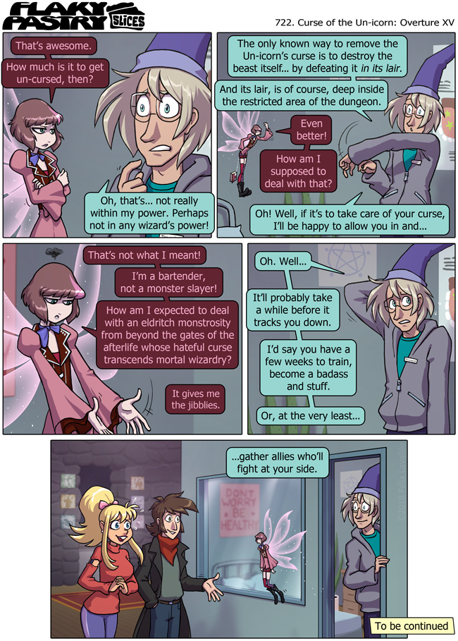 This week, on Flaky pastry... This opening chapter of Curse of the Un-icorn (it does say Overture!) comes to an end! Next week, we get Sidetracked!