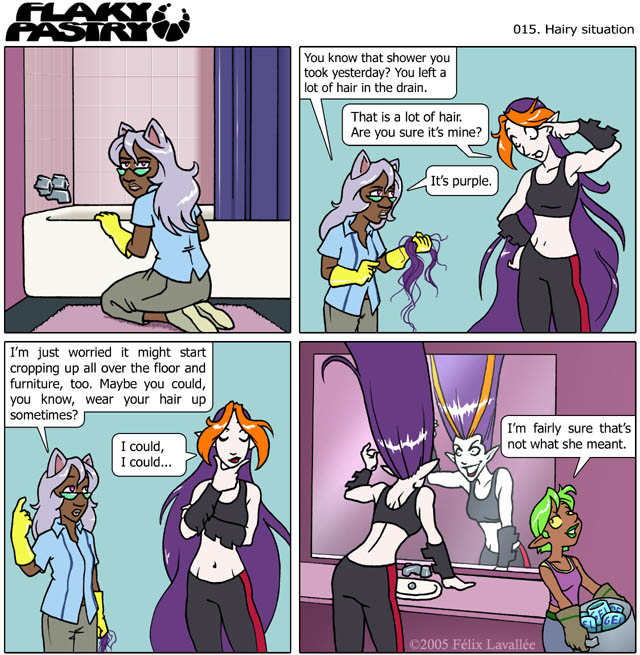 New comic! So I guess it's official? Flaky Pastry is the kind of comic where characters sometimes change clothes. Backgrounds are still my bane! And inking. And finding titles, obviously.