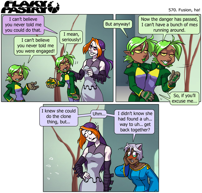 This week, on Flaky Pastry... just for fun, I checked back in the archive when was the last time I had a page where these three appear without any other character... (yeah, I know Lilas and those two other elves are just off-frame) ... and the answer I found was page 291. I mean, seriously!