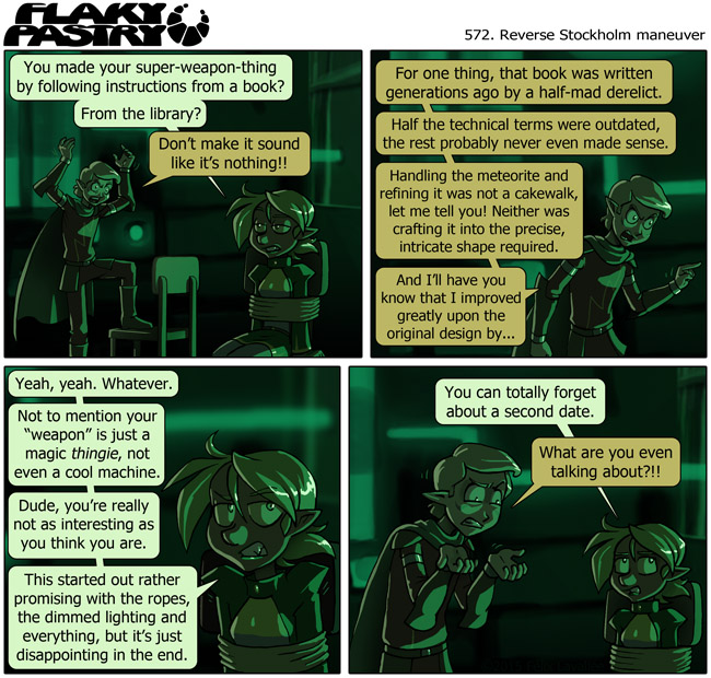 Comic updated! This week, on Flaky Pastry... things! Don't forget there's still a couple of Nitrines running around. Or in this case, tied up in the basement.