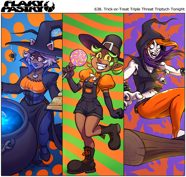 This week, on Flaky Pastry... what's this? Actual Halloween-themed art on Halloween? When's the last time THAT happened? ... 2009, that's when. Happy Halloween, everyone! Enjoy this succession of witches... and their individual wallpapers.