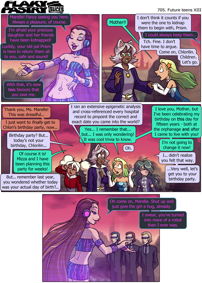 Updated! This week, on Flaky pastry... a nefarious plot is untangled! ...or something. Aaaaaaah, it's the penultimate week of Choice of Pastry! You get to vote on what a sentient book looks like.