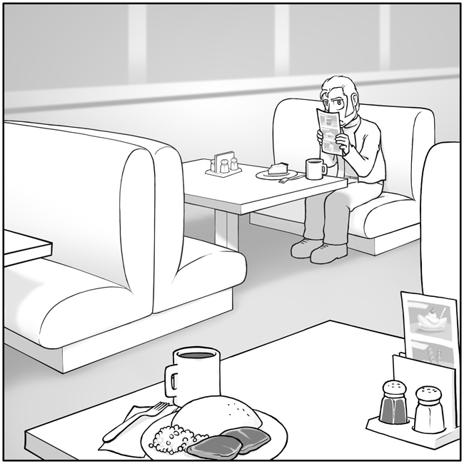 She pushes down the lever on the appliance, which pops back up immediately when she releases it. She stares at the toaster thoughtfully for a good fifteen seconds, then repeats the process. After three or four iterations of this, you kind of want to scream at her that she needs to put bread inside for it to do anything. But you keep quiet. What if she actually did hear you? You haven't exactly been invited into her home.