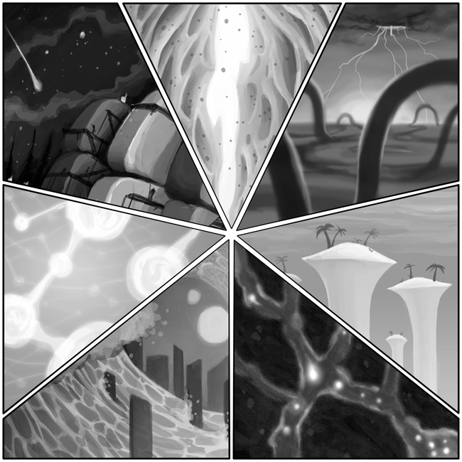 "Second, and perhaps more importantly," your neighbour continues, "this strengthening needs to happen from within. Anything we add onto the exterior of the Heptagon can easily be removed. No, seven different people need to each go into one of the seven worlds inside the gem and install the modifications at the very heart of the structure. They must keep in contact so that they do it all at the same time, and then… and then they must get out quickly."